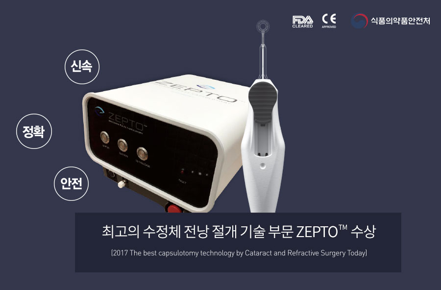백내장수술과정에서 가장 중요한 과정을 사람의 손이나 레이져가 아닌 첨단 미세전류를 이용해서 한번에 만드는 합리적인 백내장수술방법입니다. (첨단 미세전류 백내장수술 젭토백내장)