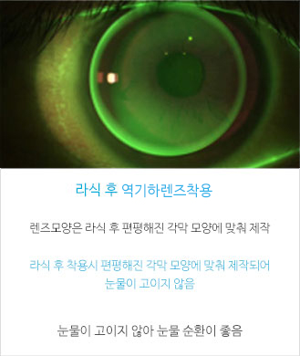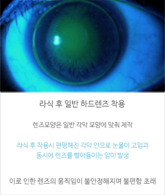 콘택트렌즈들은 곡선을 그리고 있는 각막 모양에 맞춰 제작을 하기 때문에 라식수술 후에 일반 렌즈를 착용하게 되면 렌즈