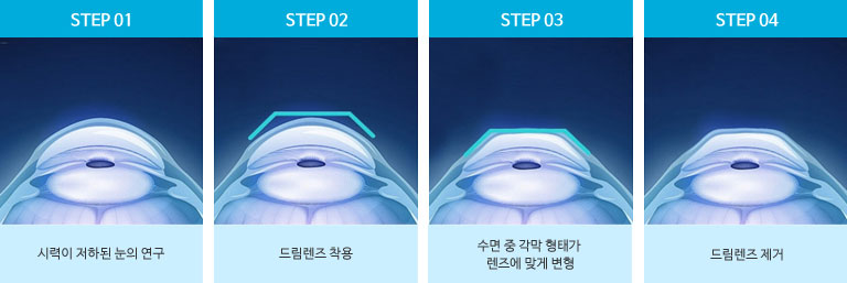 | 수술하지 않고 근시, 난시 교정이 가능합니다. | 유지렌즈를 밤마다 착용해야 합니다. |